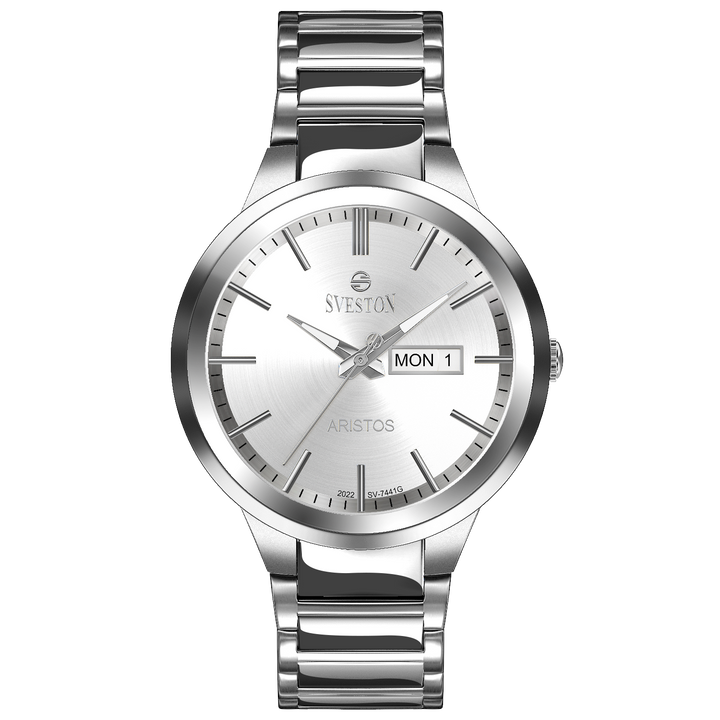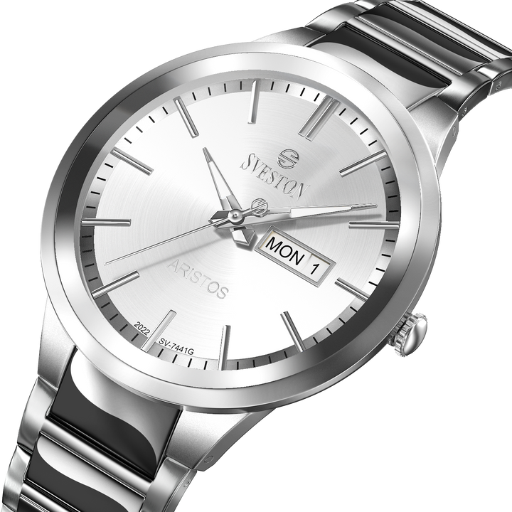 Discover the ultimate combination of style and function with the Aristos watch for men made with Japanese Quartz this stainless steel watch boasts a case size of 38mm and a lug-to-lug distance of 45mm while weighing only 113 gram With 3ATM water resistance it's the perfect watch for any occasion.