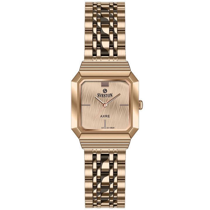 Introducing the Axre watch - a perfect accessory for any modern woman. With its sleek design and comfortable Stainless Steel, this watch is ideal for both casual and formal occasions. The 32mm lug-to-lug distance and 23mm case size make it a versatile option for any wrist size. With a weight of only 77 grams and water-resistant up to 3ATM, this feminine watch is as practical as it is stylish. Don't miss out on the perfect watch for women.