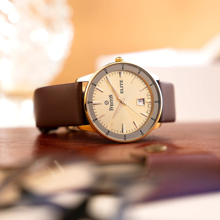 Sveston Elite a gents leather strap watch with a 38mm dial, perfectly paired with a luxury watch case for a touch of elegance