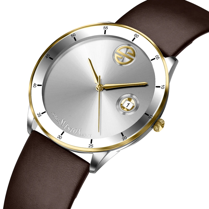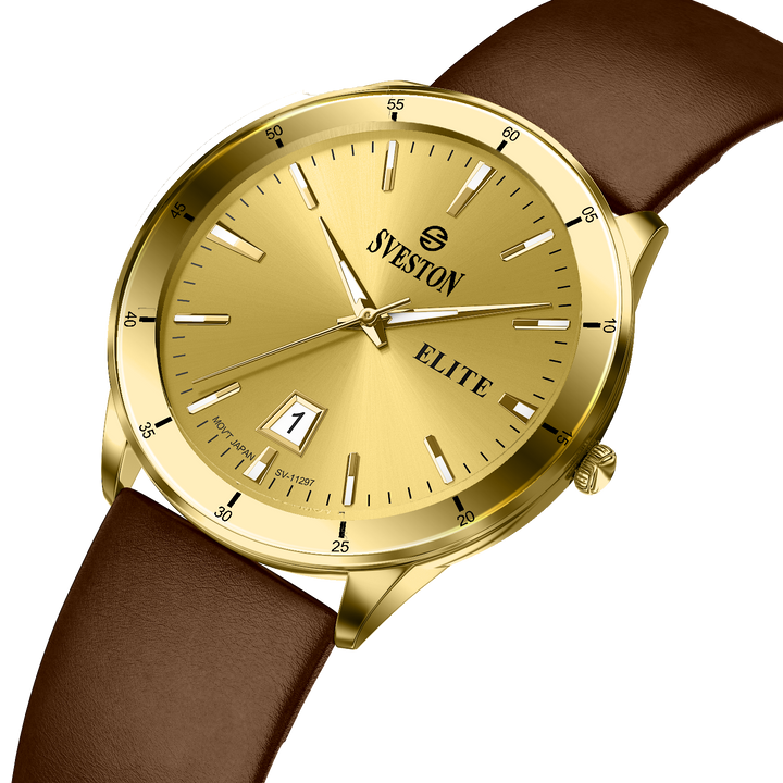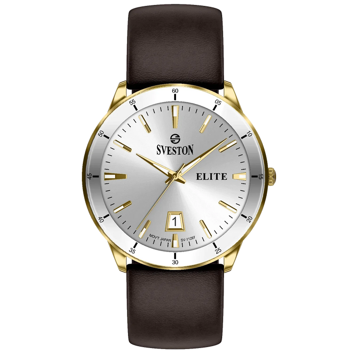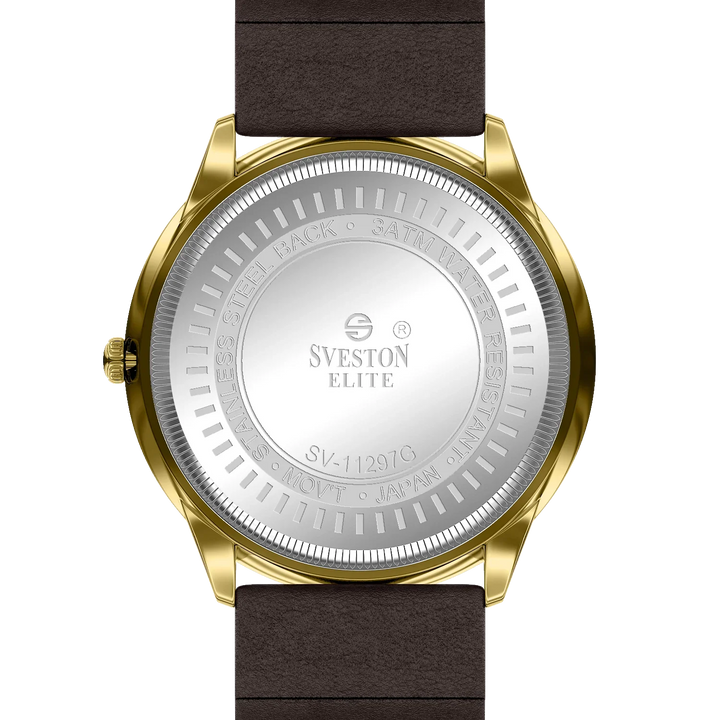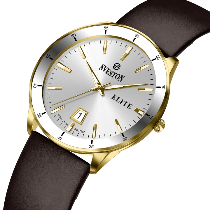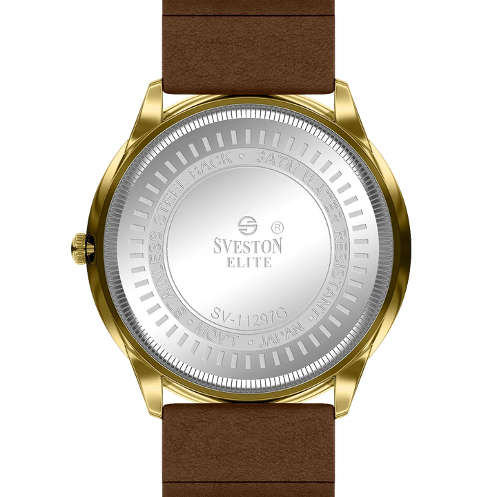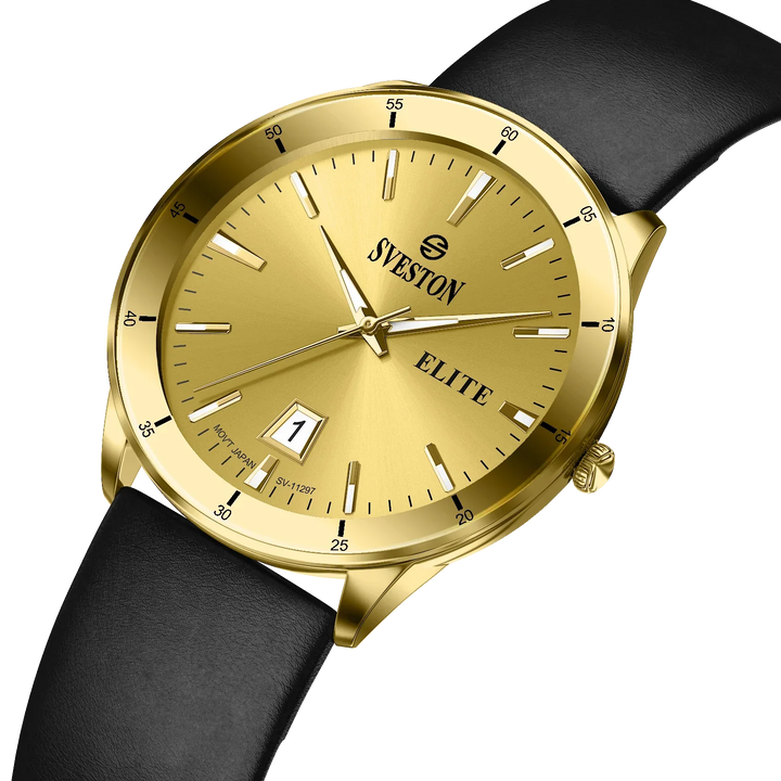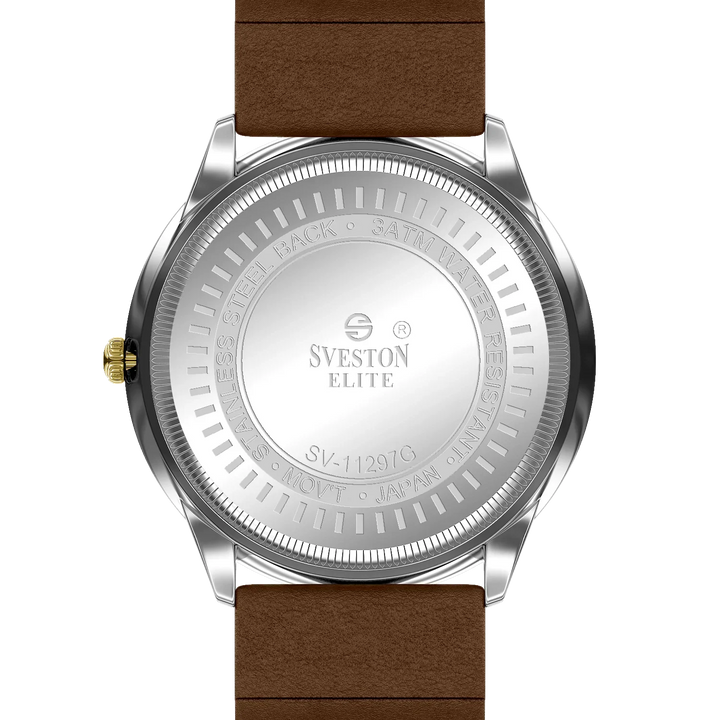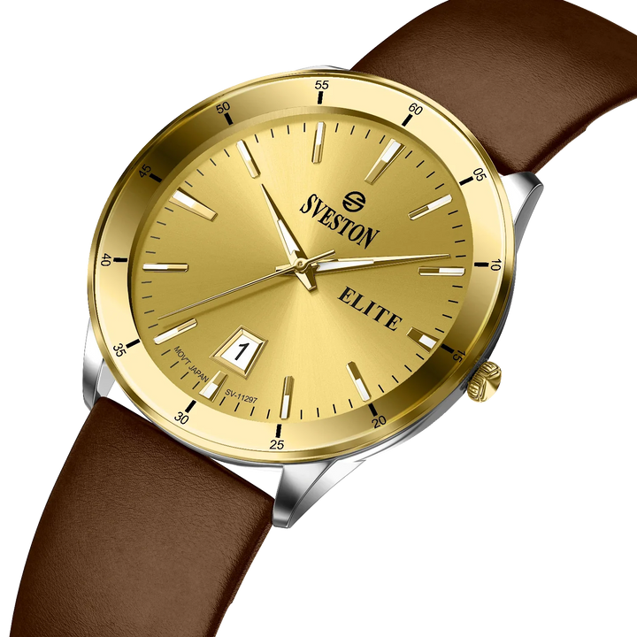Elevate your look with the luxurious Sveston Elite watch for men. Crafted with Japanese Quartz movement, this timepiece features a 38mm case, a 42mm lug-to-lug distance, and weighs just 42 grams. With 3ATM water resistance, the Sveston Elite is the ideal companion for any occasion