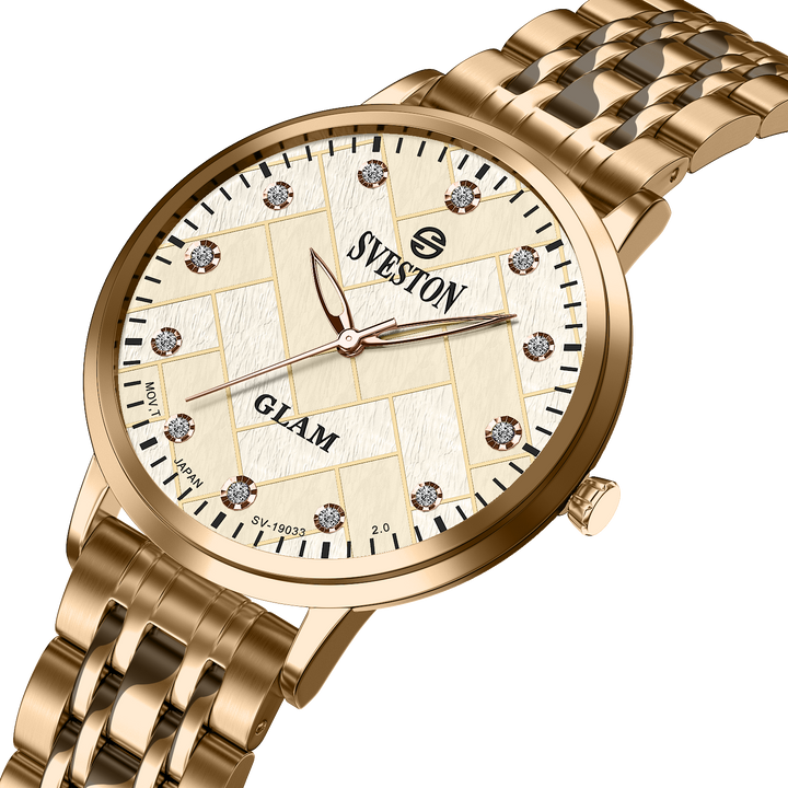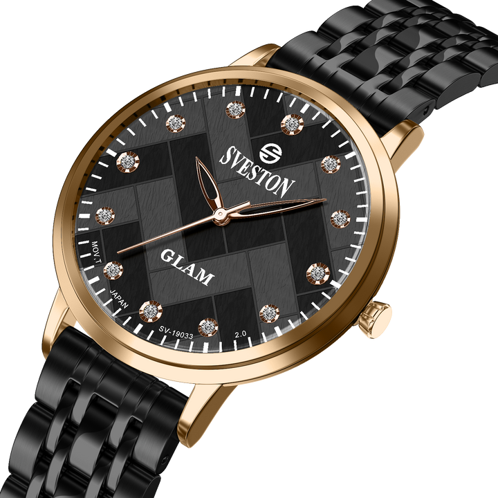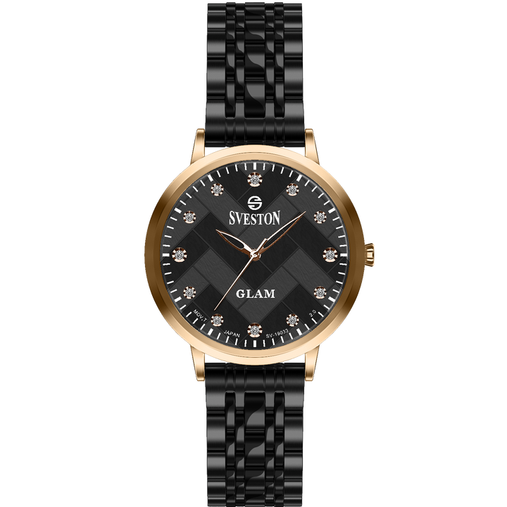 Sveston Glam is a analog battery powered wrist watch, features a 32 mm round case on a Link Stainless steel with Butterfly Deployment Clasp Functions include hours minutes & small seconds this watch comes complete with luxury box and 1 year international warranty