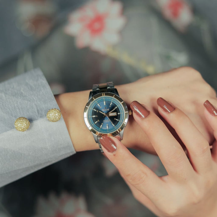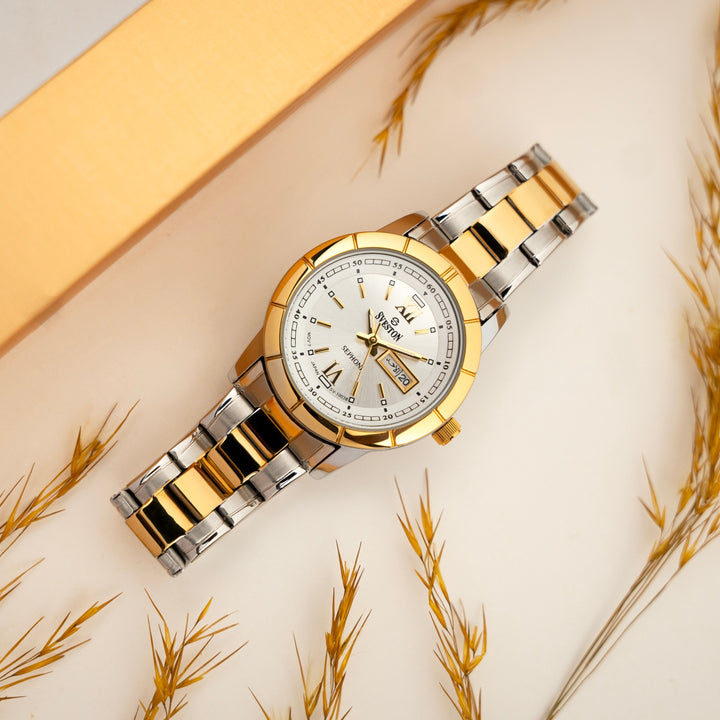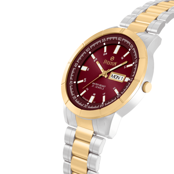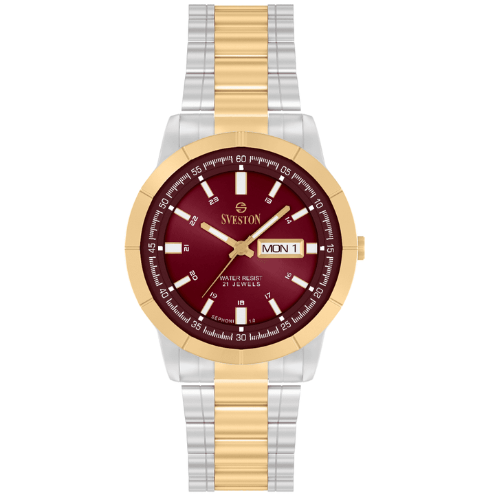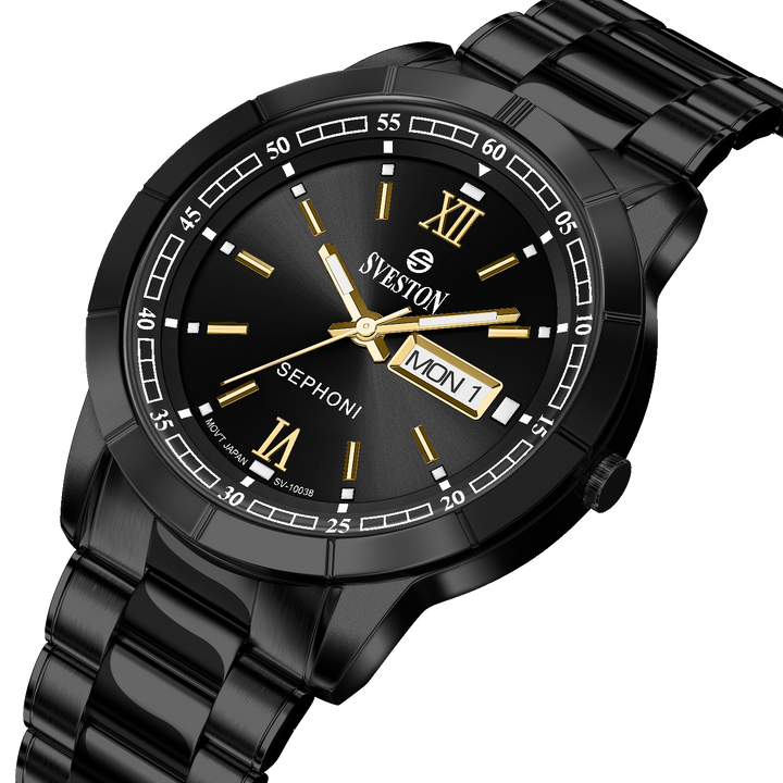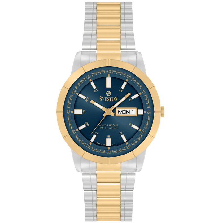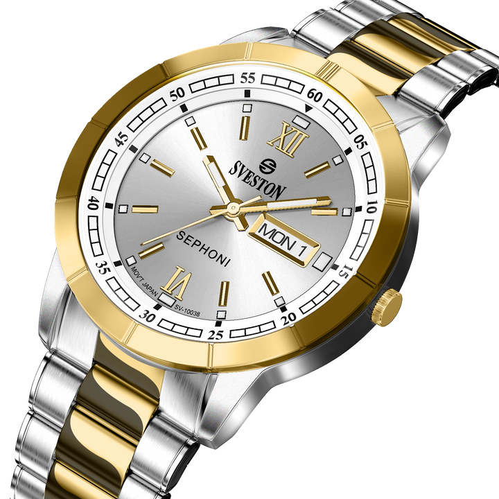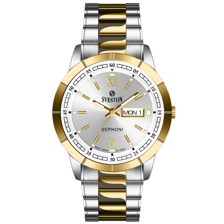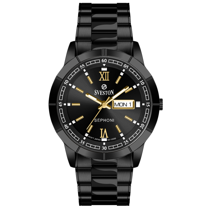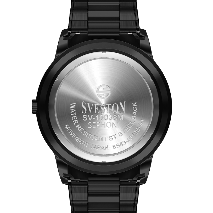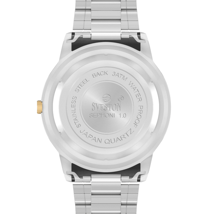 Sveston Sephoni analog battery powered 3 hand wrist watch, features a 32 mm round case on a Classic Stainless steel with Pushbutton Deployment Clasp. Functions include hours, minutes, small seconds and date window on the Right. This watch comes complete with luxury box and 1 year international warranty.