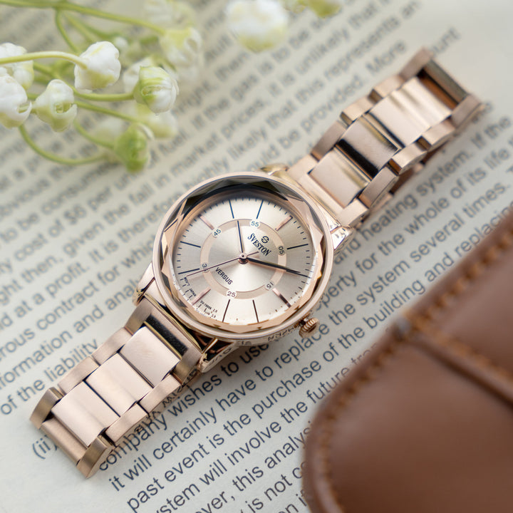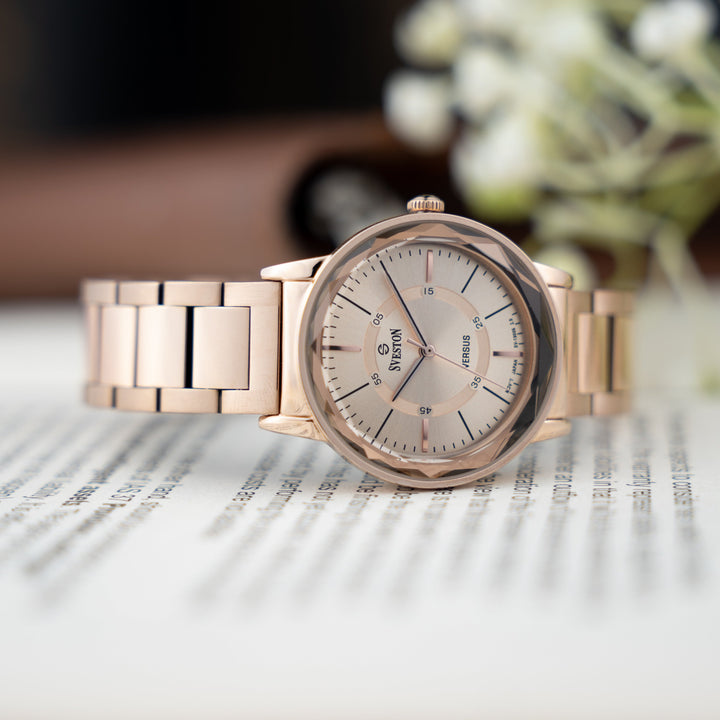 Sveston Versus is an elegant feminine stainless steel watch featuring a 31mm dial designed for sophistication and style It comes with a luxury watch case for a premium experience