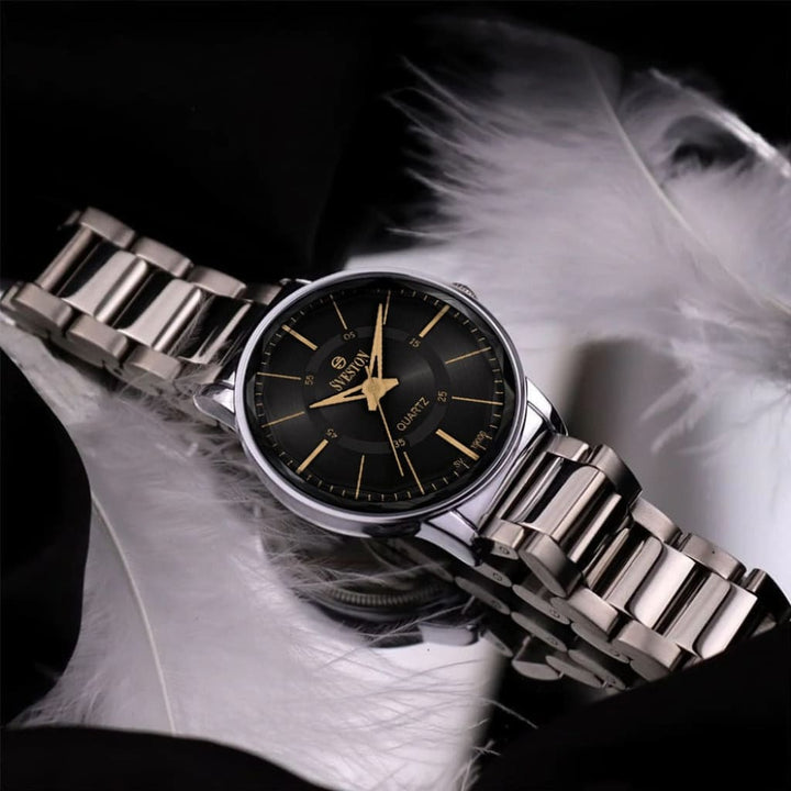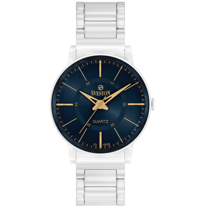 Sveston Versus is a classic analog wristwatch featuring a 31mm stainless steel round case and a secure fold-over deployment clasp It is battery-powered and offers hours minutes and small seconds functions delivered in a luxury box with a 1-year international warranty